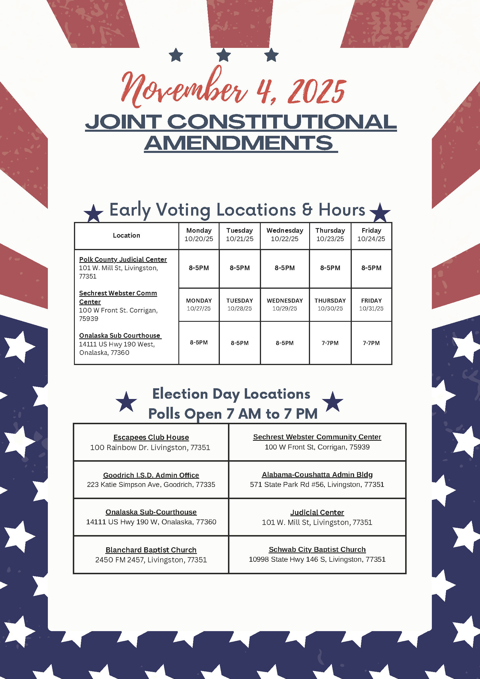 Email: Shock@co.polk.tx.us  Fax: (936) 3276855